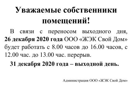 » О переносе выходного дня.